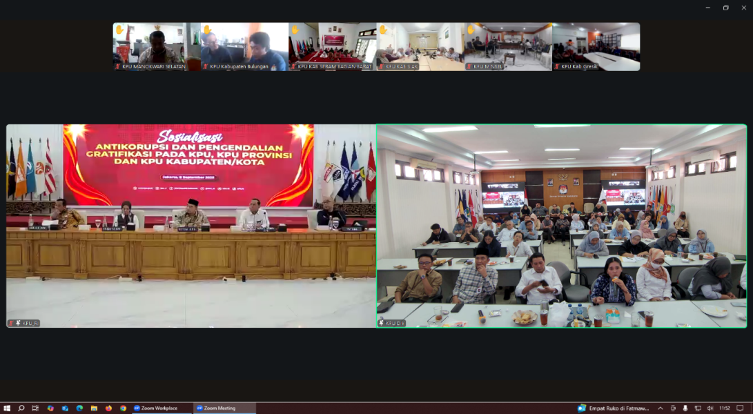 diy.kpu.go.id - Komisi Pemilihan Umum Republik Indonesia (KPU RI) menyelenggarakan Sosialiasi Antikorupsi dan Pengendalian Gratifikasi pada KPU, KPU Provinsi dan KPU Kabupaten/Kota secara hybrid (08/09/2025). Kegiatan ini dihadiri oleh Ketua, Anggota dan Sekretaris KPU DIY, Pejabat Struktural dan Fungsional KPU DIY, serta seluruh staf Pelaksana di Lingkungan KPU DIY.