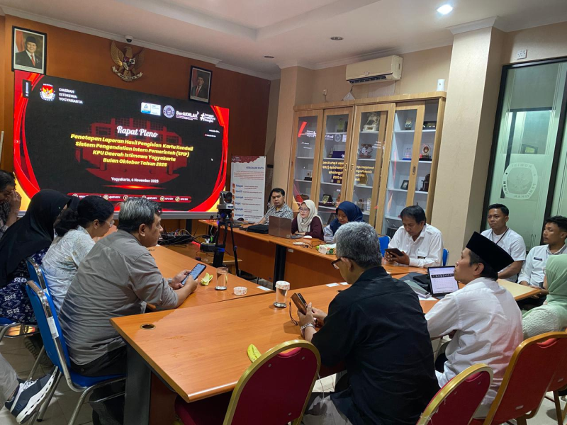 Komisi Pemilihan Umum Daerah Istimewa Yogyakarta (KPU DIY) menyelenggarakan Rapat Pleno Penetapan Kartu Kendali Sistem Pengendalian Intern Pemerintah (SPIP) pada Kamis, 6 November 2025. Kegiatan ini diikuti oleh Ketua, Anggota serta Sekretaris, pejabat struktural dan fungsional, serta pelaksana pada Subbagian Hukum KPU DIY secara hybrid.
