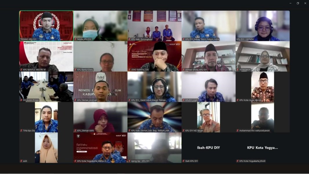 Yogyakarta, diy.kpu.go.id – Komisi Pemilihan Umum (KPU) Daerah Istimewa Yogyakarta menggelar Rapat Penataan Daerah Pemilihan Berdasarkan Data Daerah Administrasi Kependudukan (DAK) Semester I Tahun 2025, Senin (10/11/2025). Kegiatan ini dilaksanakan secara Daring melalui zoom meeting, dan diikuti oleh jajaran KPU DIY serta KPU kabupaten/kota se-DIY. Rapat penataan Dapil ini bertujuan untuk melakukan evaluasi dan penyusunan kembali terkait pembagian wilayah pemilihan agar lebih representatif, proporsional, dan sesuai dengan perkembangan data kependudukan.