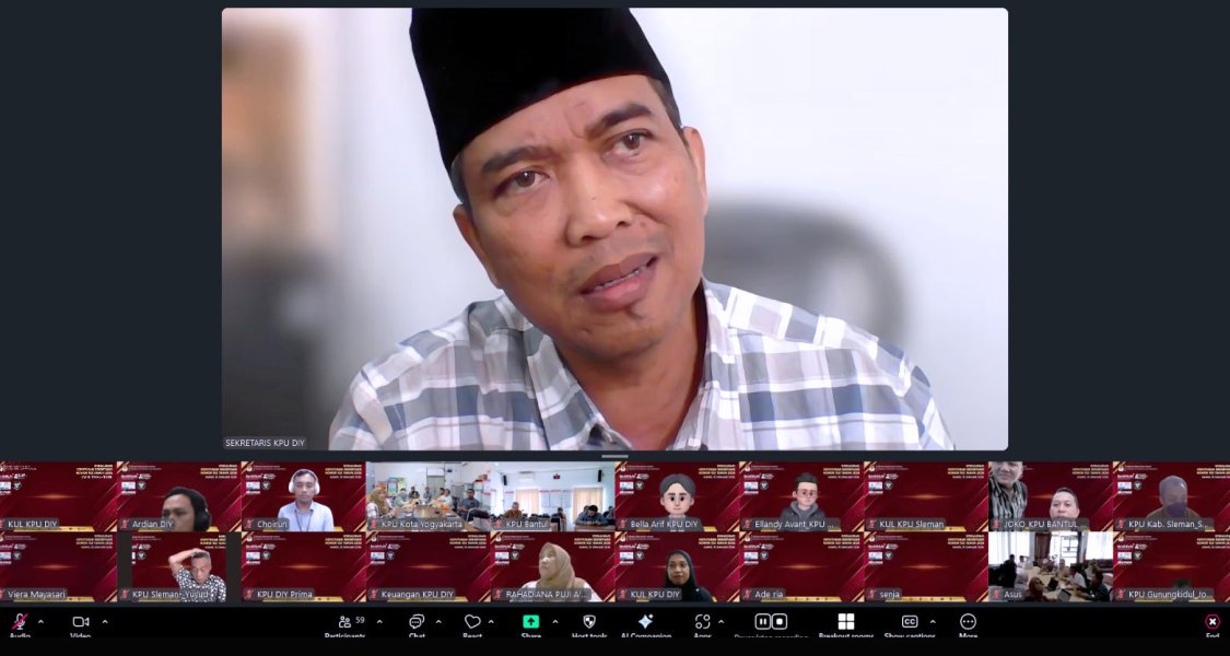 Yogyakarta, diy.kpu.go.id – Komisi Pemilihan Umum Daerah Istimewa Yogyakarta (KPU DIY) menyelenggarakan Sosialisasi Keputusan Sekretaris Nomor 102 Tahun 2026 tentang Pengelolaan Arsip di Lingkungan KPU se-DIY. Kegiatan ini dilaksanakan secara daring melalui Zoom Meeting pada Rabu (15/1/2026) pukul 13.00 WIB, diikuti oleh Ketua, Anggota, Sekretaris, pejabat struktural dan operator arsip KPU DIY dan KPU Kabupaten/Kota se-DIY. Kegiatan ini bertujuan untuk meningkatkan pemahaman dan komitmen bersama dalam pengelolaan arsip yang tertib, sistematis, dan berkelanjutan.
