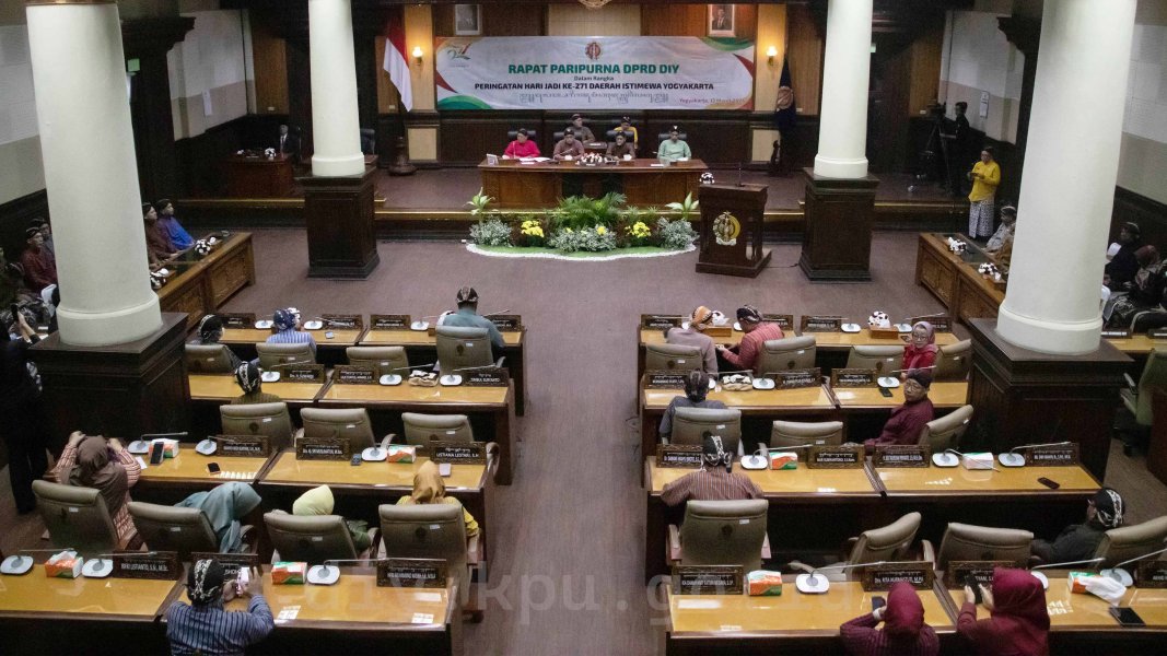 Yogyakarta, diy.kpu.go.id – Berdasarkan Peraturan Daerah DIY Nomor 2 Tahun 2024, Hari Jadi Daerah Istimewa Yogyakarta dimaknai sebagai penegasan kembali nilai-nilai historis, kultural, serta konstitusional yang menjadi fondasi keistimewaan Yogyakarta. Oleh karena itu, momentum peringatan Hari Jadi ini seharusnya menjadi panggilan moral bagi seluruh masyarakat untuk terus menjaga dan merawat DIY. Hal tersebut disampaikan Gubernur DIY, Sri Sultan Hamengku Buwono X, dalam Rapat Paripurna Istimewa memperingati Hari Jadi ke-271 DIY yang berlangsung di Gedung DPRD DIY pada Jumat (13/03).
