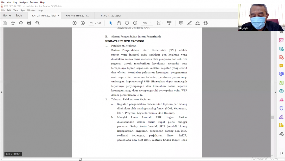 diy.kpu.go.id – Komisi Pemilihan Umum (KPU) Daerah Istimiwa Yogyakarta mengadakan rapat pleno LPPA bulan Maret (21/4) yang dilaksanakan secara daring. Rapat Pleno LPPA dibuka dan dipimpin oleh Ketua KPU DIY Hamdan Kurniawan. Rapat dihadiri oleh Ketua KPU DIY , Anggota KPU DIY, Sekretaris KPU DIY, Kabag , Kasubbag Keuangan, dan Staf Keuangan dilingkungan KPU DIY. Sebagai wujud pertanggungjawaban Sekretariat kepada Komisioiner, dalam rapat tersebut menyampaikan laporan pertanggungjawaban penggunaan Anggaran per bulan Maret tahun 2021. Paparan kegiatan rapat LPPA, disampaikan oleh Muhammad Hasyim, selaku Sekretaris KPU DIY. Dalam kesempatan berikutnya dibacakan Rekapitulasi Laporan Pertanggungjawaban Penggunaan Anggaran APBN dan Hibah oleh Indra Yudistira, selaku Kasubbag Keuangan. Setelah penyampaian laporan, Ketua KPU DIY, Hamdan Kurniawan menanggapi laporan yang sudah disampaikan. “Apabila ada revisi baik dari pusat maupun internal mohon ada penjelasan bagian mana yang ada revisi, semacam rekap untuk setiap revisi” tambah Bapak Ketua KPU DIY, Hamdan Kurniawan. Selanjutnya Ketua KPU DIY mempersilahkan Anggota untuk memberikan feedback terkait dengan laporan yang telah disampaikan. Anggota KPU DIY, Ahmad Sidqi memberikan tanggapan, “Untuk dibuat SOP untuk Perjadin”. Kemudian disambung oleh Kasubbag Keuangan, Indra Yudistira, “ Apabila realisasi melebihi pagu, sistem mengacu at cost dan SBM”. Penyampaian selanjutnya oleh Kepala Bagian Keuangan, Umum, dan Logistik, Sri Mulyani. Terkait dengan ada tambahan sangat kecil sekali pada bulan April. Rapat diakhiri pada pukul 13.20 WIB.(kul)