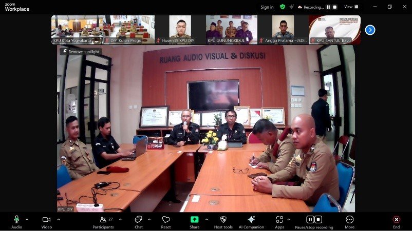 diy.kpu.go.id – Komisi Pemilihan Umum Daerah Istimewa Yogyakarta (KPU DIY) menggelar rapat evaluasi Pelaporan Dumas, Benturan Kepentingan, Pengendalian Gratifikasi, WBS, Pelayanan Publik serta JDIH pada Rabu, 30 April 2025, pukul 09.00 WIB. Kegiatan ini mengevaluasi berbagai aspek penting, mulai dari Pengaduan Masyarakat (Dumas), Benturan Kepentingan, Pengendalian Gratifikasi, Whistleblowing System (WBS), hingga Pelayanan Publik periode Maret–April 2025. Rapat dibuka oleh Ketua KPU DIY, Ahmad Shidqi, yang menyampaikan apresiasi atas komitmen seluruh peserta meskipun kegiatan berlangsung di tengah agenda padat lainnya. Ia menekankan pentingnya integritas dan konsistensi dalam pelaporan sebagai bentuk pertanggungjawaban publik. Ketua Divisi Hukum dan Pengawasan KPU DIY, Ibah Muthiah, dalam pengarahannya menegaskan bahwa kegiatan ini merupakan instrumen wajib yang harus dilaporkan rutin ke KPU RI, sekaligus menjadi tolak ukur efektivitas pengawasan dan pelayanan internal. Kepala Bagian Keuangan, Umum, dan Logistik, Bambang Gunawan, dalam laporannya menyampaikan bahwa seluruh layanan publik pada periode Maret hingga April telah difasilitasi sesuai kebutuhan. Ia juga menambahkan bahwa Survei Persepsi Kualitas Pelayanan telah dilaksanakan sesuai pedoman Permenpan RB Nomor 14 Tahun 2017, dengan menggunakan Google Form sebagai instrumen utama penilaian kepuasan masyarakat. Sementara itu, Kepala Bagian Teknis Penyelenggaraan dan Hukum, Indra Yudistira, menyampaikan perkembangan implementasi Jaringan Dokumentasi dan Informasi Hukum (JDIH) di seluruh wilayah DIY. Ia mengapresiasi kemajuan yang telah dicapai, namun tetap mencatat bahwa masih terdapat beberapa KPU Kabupaten/Kota yang belum melakukan pembaruan data secara berkala. Dengan digelarnya rapat evaluasi ini, KPU DIY menegaskan komitmennya untuk terus memperkuat akuntabilitas, meningkatkan kualitas pelayanan publik, serta memastikan keterbukaan informasi hukum melalui pengelolaan JDIH yang optimal.