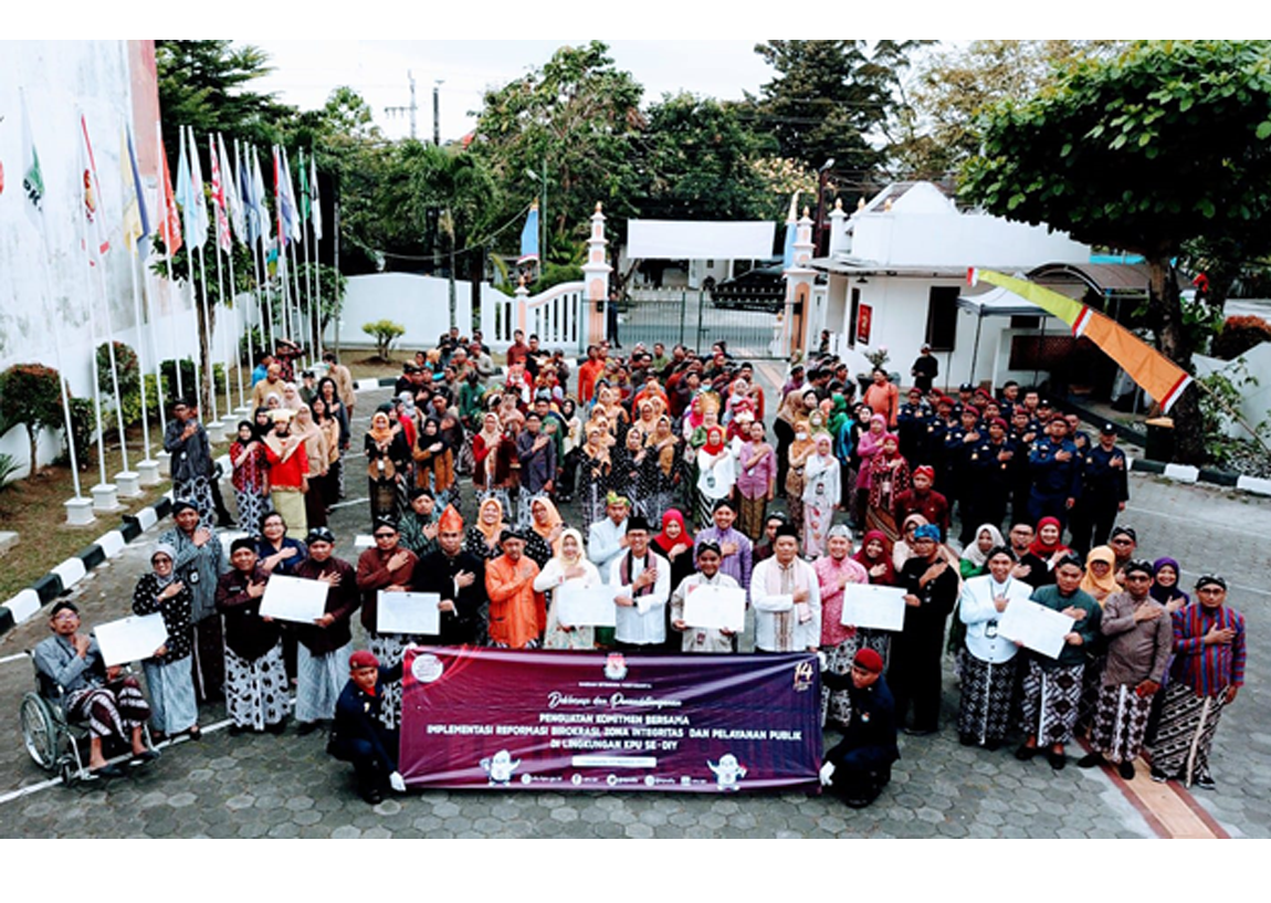 diy.kpu.go.id - Pada Kamis (17/08/2023), di Kantor Komisi Pemilihan Umum Daerah Istimewa Yogyakarta (KPU DIY), seluruh pegawai KPU DIY dan KPU Kabupaten/Kota se-DIY melakukan deklarasi dan penandatanganan ikrar dan komitmen bersama terkait implementasi Reformasi Birokrasi, Zona Integritas dan pelayanan publik. Mewakili seluruh peserta, pembacaan naskah ikrar dan komitmen dilakukan oleh Ketua KPU DIY, Hamdan Kurniawan. Sedangkan penandatanganan dokumen dilakukan oleh Ketua, Anggota, Sekretaris beserta perwakilan pejabat dan pelaksana di setiap satuan kerja KPU Kabupaten/Kota se DIY. Kegiatan yang juga telah dilaksanakan pada tahun 2022 ini merupakan salah satu upaya KPU DIY untuk mengingatkan kembali kepada seluruh pegawai KPU se-DIY agar berpegang teguh pada kode etik penyelenggara pemilu. Selain itu juga untuk menginternalisasi nilai budaya kerja yang mencerminkan pelaksanaan kerja secara ikhlas, jujur dan bertanggung jawab, komitmen untuk tidak akan melakukan praktek Korupsi, Kolusi dan Nepotisme yang merugikan negara serta untuk mengenal, mencegah, dan mengatasi situasi-situasi benturan kepentingan secara transparan dan efisien. Dengan penguatan komitmen ini, diharapkan seluruh satker KPU se-DIY dapat senantiasa memberikan pelayanan publik yang prima kepada masyarakat serta menjadi satuan kerja dengan predikat Wilayah Bebas dari Korupsi (WBK) dan Wilayah Birokrasi Bersih dan Melayani (WBBM).(ren)