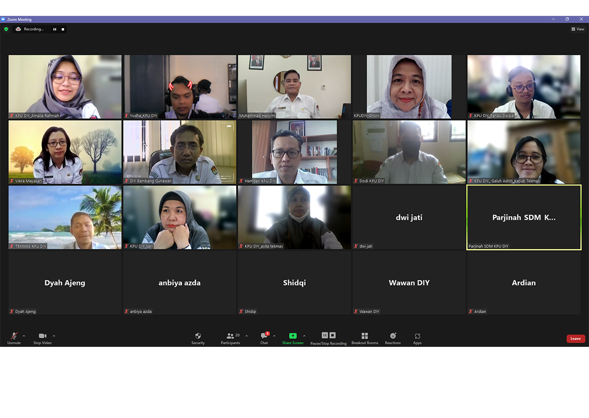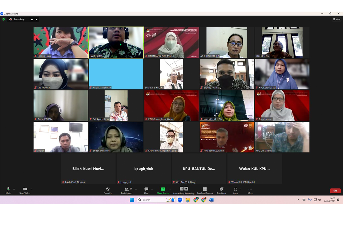 diy.kpu.go.id - Komisi Pemilihan Umum (KPU) Daerah Istimewa Yogyakarta adakan Rapat Pleno Pengisian dan Penetapan Kartu Kendali SPIP di Lingkungan KPU se-DIY, Pelaporan dan Evaluasi Pengaduan Masyarakat, Penanganan Benturan Kepentingan, Pengendalian Gratifikasi dan Whistle Blowing System serta Pelayanan Publik dan Rapat Koordinasi JDIH, secara daring melalui zoom meeting, pada Senin (08/05/2023).