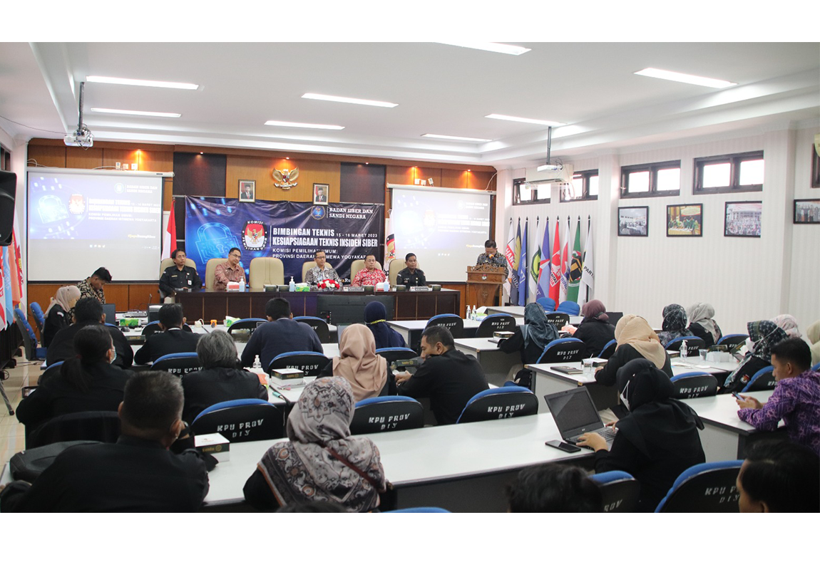 diy.kpu.go.id - (15/03/2023) Komisi Pemilihan Umum (KPU) Daerah Istimewa Yogyakarta menyelenggarakan Bimbingan Teknis Kesiapsiagaan Teknis Insiden Siber. Bimbingan ini dilakukan untuk meningkatkan pemahaman dan kemampuan Komisi Pemilihan Umum se-Daerah Istimewa Yogyakarta dalam menangani serta mencegah insiden siber. Kegiatan tersebut dihadiri oleh Marsekal Pertama TNI Yos Alfantino selaku Direktur Keamanan Siber dan Sandi Pemerintah Pusat Badan Siber dan Sandi Negara, Sriyanto selaku Koordinator Pengembangan Ekosistem Badan Siber dan Sandi Negara, Hamdan Kurniawan selaku Ketua KPU DIY, Muhammad Hasyim selaku Sekretaris KPU DIY, Bambang Gunawan selaku Kepala Bagian Perencanaan, Data, dan Informasi Sekretariat DIY, serta pejabat struktural KPU se-Daerah Istimewa Yogyakarta. Direktur Badan Siber dan Sandi Negara dalam sambutannya menyampaikan bahwa keamanan siber menjadi salah satu isu krusial di Indonesia. Berdasarkan data dari Badan Siber dan Sandi Negara, insiden siber yang paling banyak ditemukan pada tahun 2022 adalah kebocoran data, ransomware, dan web defacement. Oleh karena itu, keamanan siber perlu mendapat perhatian khusus mengingat pemanfaatan teknologi informasi dan komunikasi di KPU DIY sebagai saluran pendukung proses penyelenggaraan pemilihan umum. Dalam penyelenggaraan pemilu, KPU DIY bertanggungjawab menjaga data pemilih, pendukung, dan peserta pemilu serta memastikan data tersebut dalam kondisi aman. Sambutan dari Direktur Badan Siber dan Sandi Negara terkait insiden siber ditanggapi secara langsung oleh Hamdan Kurniawan. “Insiden siber pernah dihadapi oleh KPU Bantul pada 2012. Secara spesifik, insiden siber ini menyerang website KPU Bantul yang kemudian melemahkan pelayanan dan akses informasi kepada masyarakat. Bahkan, proses pemulihan website ini memerlukan koordinasi dengan KPU RI dan memakan waktu yang cukup panjang”, ungkap Ketua KPU DIY, Hamdan Kurniawan. Bimbingan teknis kesiapsiagaan teknis insiden siber dilanjutkan dengan pemaparan materi terkait jenis-jenis kejahatan siber dan cara mengatasi insiden siber serta praktik penanganan insiden siber oleh Donny Setyanto dari Badan Siber dan Sandi Negara. Praktik penanganan insiden siber ini difokuskan pada simulasi penanganan phising dan ransomware. Secara spesifik simulasi dilakukan melalui beberapa tahapan, mencakup tahap mendeteksi insiden siber, menganalisis insiden siber berupa ransomware, penanganan insiden siber, koordinasi dengan CSIRT, pemusnahan sumber insiden, dan pemulihan bersama CSIRT. Simulasi ini diikuti oleh seluruh pejabat struktural KPU se-Daerah Istimewa Yogyakarta dan didampingi oleh Badan Siber dan Sandi Negara. Secara keseluruhan, bimbingan teknis kesiapsiagaan teknis insiden siber berjalan dengan lancar. Kegiatan ditutup oleh Sriyanto selaku Koordinator Pengembangan Ekosistem Badan Siber dan Sandi Negara. Harapannya, bimbingan teknis kesiapsiagaan teknis insiden siber mampu meningkatkan kemampuan sumber daya manusia dalam menghadapi insiden siber dan memberi gambaran manajemen keamanan siber sehingga insiden siber dapat ditangani dengan tepat dan cepat.(rendatin)