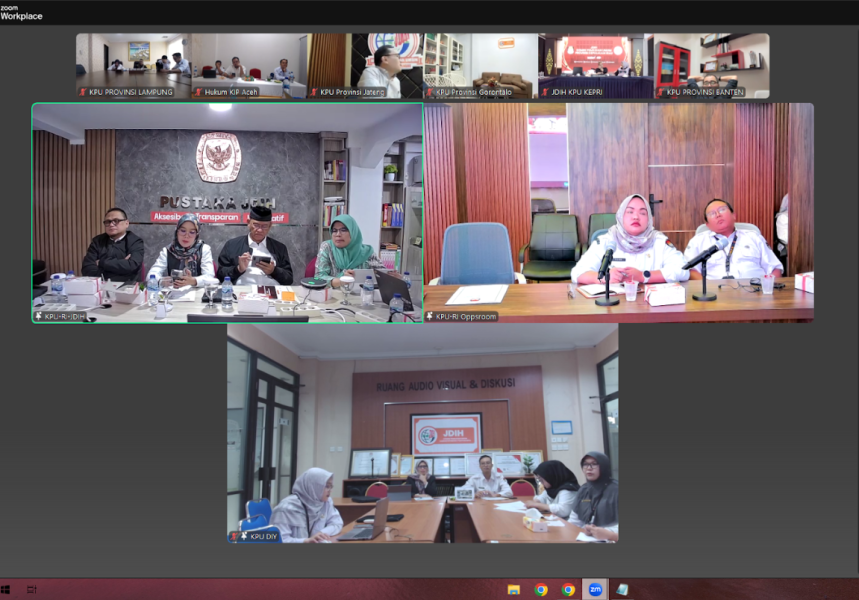 Yogyakarta, diy.kpu.go.id - Komisi Pemilihan Umum Republik Indonesia (KPU RI) menyelenggarakan Rapat Koordinasi Peningkatan Kualitas Pengelolaan Jaringan Dokumentasi dan Informasi Hukum (JDIH) di lingkungan Sekretariat KPU, khususnya pada KPU Provinsi secara daring, (24/07/2025). Kegiatan ini dihadiri oleh Ketua Divisi Hukum dan Pengawasan Ibah Muthiah, Kepala Bagian Teknis Penyelenggaraan Pemilu dan Hukum Indra Yudistira, Kepala Sub Bagian Hukum Amalia Rahmah, Analis Hukum Ahli Muda Sari Ananingsih, serta staf pelaksana Sub Bagian Hukum. Kegiatan ini dibuka secara resmi oleh Ketua Divisi Hukum dan Pengawasan KPU RI Iffa Rosita. Melalui pertemuan ini diharapkan menjadi langkah strategis agar dapat mengetahui kondisi JDIH setiap satker dan mendorong KPU di seluruh Indonesia untuk berkreasi dalam pengelolaan JDIH. Iffa menjelaskan, “Sebagai komitmen terhadap pengelolaan JDIH, menjamin ketersediaan dokumentasi informasi hukum dan meningkatkan keterbukaan informasi, KPU rutin melakukan monitoring dan maintenance berkala di seluruh provinsi, serta kabupaten/kota dengan berkoordinasi pada Pusat Data dan Teknologi Informasi (Pusdatin) KPU.” Dalam kesempatan ini, Deputi Bidang Dukungan Teknis KPU RI Eberta Kawima menyampaikan bahwa perlu ada sebuah usaha yang maksimal dan tanggung jawab dalam meningkatkan pemahaman tentang informasi hukum kepada masyarakat, sebab setiap produk hukum KPU selalu menjadi daya tarik bagi masyarakat luas. Turut hadir dalam kegiatan ini, Kepala Biro Hukum KPU RI Novy Hasbhy Munnawar yang menyampaikan harapan agar kedepannya semua satker baik provinsi dan kabupaten/kota memiliki ruangan dan fasilitas yang memadai guna meningkatkan kepuasan masyarakat terkait pengelolaan JDIH. Kegiatan ini ditutup dengan penyampaian materi oleh narasumber yaitu Koordinator Otomasi Dokumentasi Hukum Badan Pembinaan Hukum Nasional Kementerian Hukum RI, Emalia Suwartika. Dalam pemaparannya beliau memberikan apresiasi kepada KPU yang telah mampu menggerakkan 38 satker di provinsi agar terus konsisten dalam pengelolaan JDIH, pemaparan strategi pengelolaan, standar laporan evaluasi, dan indikator penilaian JDIH. Melalui pelaksanaan rapat koordinasi ini diharapkan dapat memperdalam pemahaman dan penyeragaman pengelolaan JDIH sesuai dengan standarnya. Serta menumbuhkan kesadaran kolektif bagi pengelolaan JDIH sebagai bagian dari keterbukaan informasi publik, dan akuntabilitas penyelenggara pemilu.