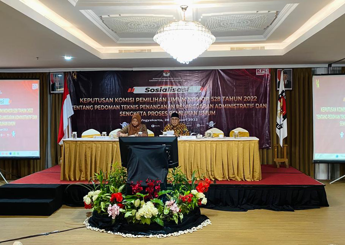 diy.kpu.go.id - Untuk meningkatkan pemahaman jajarannya tentang teknis penanganan pelanggaran administrasi dan sengketa proses, pada Selasa (28/02/2023), Komisi Pemilihan Umum Daerah Istimewa Yogyakarta (KPU DIY), menyelenggarakan Sosialisasi Keputusan KPU Nomor 528 Tahun 2022. Keputusan yang ditetapkan pada 19 Desember 2022 ini mengatur tentang Pedoman Teknis Penanganan Pelanggaran Administratif dan Sengketa Proses Pemilihan Umum. Sosialisasi diikuti oleh Ketua, Anggota, pejabat dan staf KPU se-DIY dan dari Badan Pengawas Pemilu DIY. Dalam sambutan acara, Ketua KPU DIY, Hamdan Kurniawan, menyampaikan rasa syukurnya atas terbitnya Keputusan 528 Tahun 2022. Menurut Hamdan, Keputusan ini menjadi panduan bagi penyelenggara pemilu dalam menentukan langkah-langkah yang sistematis. Hamdan juga mengatakan, “Untuk memberikan pemahaman yang lebih komprehensif atas pembacaan Keputusan 528 Tahun 2022, maka sosialisasi ini menghadirkan narasumber dari KPU RI.” Mengawali pemaparannya, Sigit Joyowardono, Fungsional Tata Kelola Pemilu Ahli Utama KPU RI, mengatakan kalau keputusan ini diterbitkan dengan mendasarkan pada pasal 462 dan 469 Undang-Undang 7 Tahun 2017. Selanjutnya, alumni Fakultas Hukum Universitas Gadjah Mada yang lahir di Kulon Progo ini memaparkan kedalaman Keputusan KPU Nomor 528 Tahun 2022 berikut teknis penyikapan yang perlu dilakukan oleh KPU atas potensi kasus dalam setiap tahapan Pemilu. Sementara itu, Edho Rizky Ermansyah, Tenaga Ahli pada Biro Advokasi Hukum dan Penyelesaian Sengketa KPU RI, dalam sesi tentang Teknik Penyusunan Dokumen Pembelaan Hukum mengatakan kalau Keputusan ini dimaksudkan sebagai panduan untuk membuat setiap dokumen pembelaan hukum dapat disusun secara sistematis dan komprehensif. Edho juga menyampaikan kalau Keputusan ini dibuat dengan tujuan agar penyelenggara pemilu dapat menyusun dokumen pembelaan hukum yang mampu digunakan untuk membantah dalil-dalil lawan dan meyakinkan majelis hakim. Pria yang memiliki lisensi advokat ini selanjutnya juga membedah dan mengajak peserta sosialisasi untuk mendiskusikan tentang anatomi jawaban dan teknik penyusunan jawaban dalam beracara. Selaras dengan para narasumber, Ketua Divisi Hukum dan Pengawasan KPU DIY, Siti Ghoniyatun, yang dalam sosialisasi ini bertindak sebagai moderator mengajak peserta Sosialisasi untuk tidak sekedar membaca regulasi secara tekstual tapi juga untuk memahami Keputusan 528 Tahun 2022 secara kontekstual.(tp3h2s)