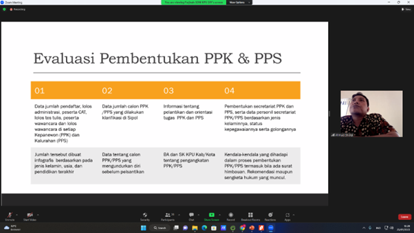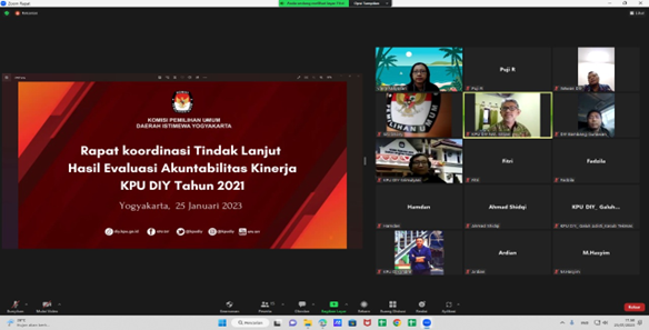 diy.kpu.go.id - Rabu (25/01/2023) seluruh Komisioner serta pejabat struktural KPU DIY melakukan rapat tindak lanjut atas hasil evaluasi implementasi Sistem Akuntabilitas Kinerja Instansi Pemerintah (SAKIP) KPU DIY Tahun 2021. Hasil evaluasi SAKIP KPU DIY ditahun 2021 sebesar 78,23 dengan kategori “BB” terinterpretasi “Sangat Baik”. Tingkat efektifitas dan efisiensi penggunaan anggaran dibandingkan dengan capaian kinerja juga telah memadai. Beberapa catatan atas kekurangan pada SAKIP KPU DIY diantaranya adalah Indikator Kinerja Utama (IKU) belum dimanfaatkan sepenuhnya untuk alat ukur pencapaian tujuan dalam Rencana Kinerja Tahunan, Perjanjian Kinerja serta Rincian Kertas Kerja Kementerian/Lembaga. Tindak lanjut yang akan dilaksanakan adalah pencermatan IKU Tahun 2020-2024 oleh Sub Bagian Perencanaan, untuk selanjutnya hasil pencermatan tersebut disampaikan dalam forum pimpinan untuk dilakukan review. Hal ini akan dilakukan secara periodik (triwulan atau semester). Sekretaris KPU DIY, Muhammad Hasyim menambahan akan dilakukan penyesuaian pada Perjanjian Kinerja. Diharapkan dengan adanya penyesuaian yang akan dilakukan dapat menghasilkan peningkatan angka capaian kinerja KPU DIY. Selain itu, hasil evaluasi diharapkan akan memberikan dampak pada proses perencanaan di tahun selanjutnya.