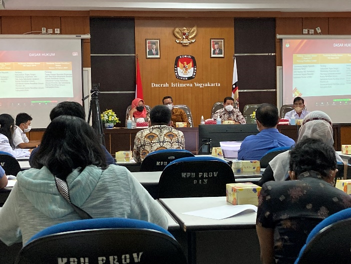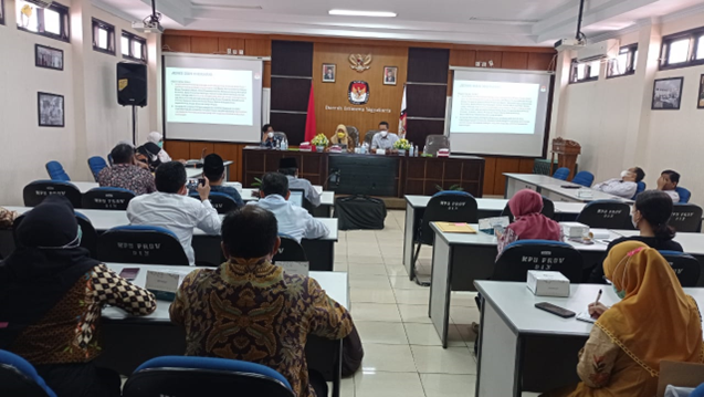 diy.kpu.go.id - Divisi Teknis Penyelenggaraan Komisi Pemilihan Umum Daerah Istimewa Yogyakarta (KPU DIY), Moh Zaenuri Ikhsan, menghadiri Rapat Kerja (Raker) Forum Kewaspadaan Dini Masyarakat (FKDM) DIY Tahun 2022. Kegiatan tersebut diselenggarakan oleh Badan Kesatuan Bangsa dan Politik Daerah Istimewa Yogyakarta (Bakesbangpol DIY) pada Rabu (13/7/2022). Forum dibuka oleh Ketua Forum Kewaspadaan Dini Masyarakat (FKDM) DIY, Surjadiman. Kegiatan ini mengundang instansi terkait di lingkungan DIY, Bakesbangpol tingkat Kabupaten/Kota, serta perwakilan Organisasi Masyarakat di DIY. Tema yang diusung dalam pembahasan yaitu optimalisasi peran FKDM dalam menyongsong Pemilu 2024. Moh Zaenuri Ikhsan memaparkan materi terkait Sosialisasi Pelaksanaan Pemilu 2022: Tahapan, Potensi Permasalahan dan Antisipasinya. Beliau menyampaikan, “Tahapan Pemilu Serentak 2024 dimulai 20 bulan sebelum pelaksanaannya yaitu pada 14 Juni 2022. Terkait tahap pendaftaran dan verifikasi partai politik sebagai peserta Pemilu 2024, masih dalam proses rancangan peraturan KPU.” Ia menambahkan bahwa dalam tahap pendaftaran dan verifikasi partai politik sebagai peserta Pemilu 2024, KPU mewajibkan penggunaan Sistem Informasi Partai Politik (SIPOL) dalam menyampaikan persyaratan pendaftaran peserta Pemilu. Syarat pendaftaran tersebut termasuk penyampaian bukti keanggotaan dalam partai politik dalam bentuk Kartu Tanda Anggota (KTA) dan Kartu Tanda Penduduk (KTP) elektronik yang diunggah dalam SIPOL. Forum tersebut juga membahas diskusi terkait potensi kerawanan dalam Pelaksanaan Pemilu 2024 serta perkembangan situasi di DIY. Menyambung hal tersebut, Moh Zaenuri Ikhsan menyampaikan, “Potensi kerawanan yang bisa terjadi diantaranya adanya penyalahgunaan data pribadi KTP sebagai bukti keanggotaan partai politik. Nantinya untuk mengantisipasi hal tersebut, KPU menyiapkan fitur SIPOL agar dapat diakses oleh masyarakat. Sehingga masyarakat dapat melakukan pengecekan dan ketika ada ketidakbenaran dapat disampaikan kepada KPU agar penyalahgunaan nama dapat dihindari.”