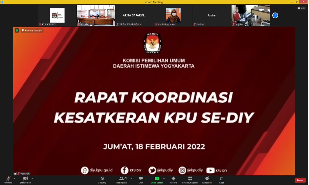 diy.kpu.go.id - Komisi Pemilihan Umum Daerah Istimewa Yogyakarta menghadiri kegiatan Rapat Pimpinan KPU dengan KPU Provinsi/KIP Aceh se Indonesia yang dilaksanakan pada tanggal 23 – 26 Februari 2022 di Hotel JW Marriot Surabaya. Acara rapat pimpinan ini dibuka oleh Ketua KPU RI pada tanggal 23 Februari 2022 pukul 19.00 WIB, kemudian dilanjutkan dengan sambutan dan pengarahan dari pimpinan KPU RI. Selain itu KPU juga meluncurkan Buku Digitalisasi Pemilu 2024, Buku Sirekap, Buku Pendidikan Pemilih, Web dan Aplikasi Mobile Lindungi Hakmu. Pada hari kedua rapat pimpinan, diisi kegiatan pemaparan oleh narasumber Ketua Komisi II DPR RI, Menteri Dalam Negeri RI, Menteri Keuangan RI, Menteri PPN/ Kepala Bappenas, Ketua KPU RI, Ketua Bawaslu, dan Ketua DKPP. Selanjutnya peserta dibagi menjadi 6 kelas dengan tema diskusi sebagai berikut: 1. Kelas I : Perencanaan, Program, Kegiatan, dan Anggaran. 2. Kelas II : Sosialisasi dan Bimtek. 3. Kelas III : Pemutakhiran Data Pemilih dan Sistem Informasi (IT). 4. Kelas IV : Pendaftaran dan Verifikasi Parpol. 5. Kelas V : Seleksi Badan Adhoc. 6. Kelas VI : Dukungan Sekretariat. Pada hari ketiga Rapat Pimpinan KPU, peserta kembali dibagi dalam beberapa kelas untuk berdiskusi dengan tema draf peraturan KPU. Setelah dilakukan diskusi yang dibagi kedalam 6 kelas tersebut acara dilanjutkan dengan pemaparan kesimpulan dan rekomendasi dari masing- masing kelas. Acara Rapat Pimpinan KPU RI dilanjutkan dengan Pemberian Penghargaan JDIH KPU Provinsi Terbaik Tahun 2021, sekaligus ditutup secara resmi oleh Ketua KPU RI.(pdatin)