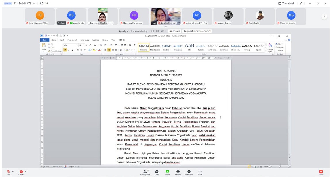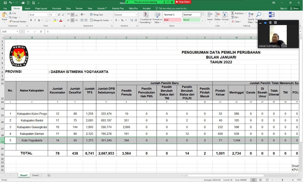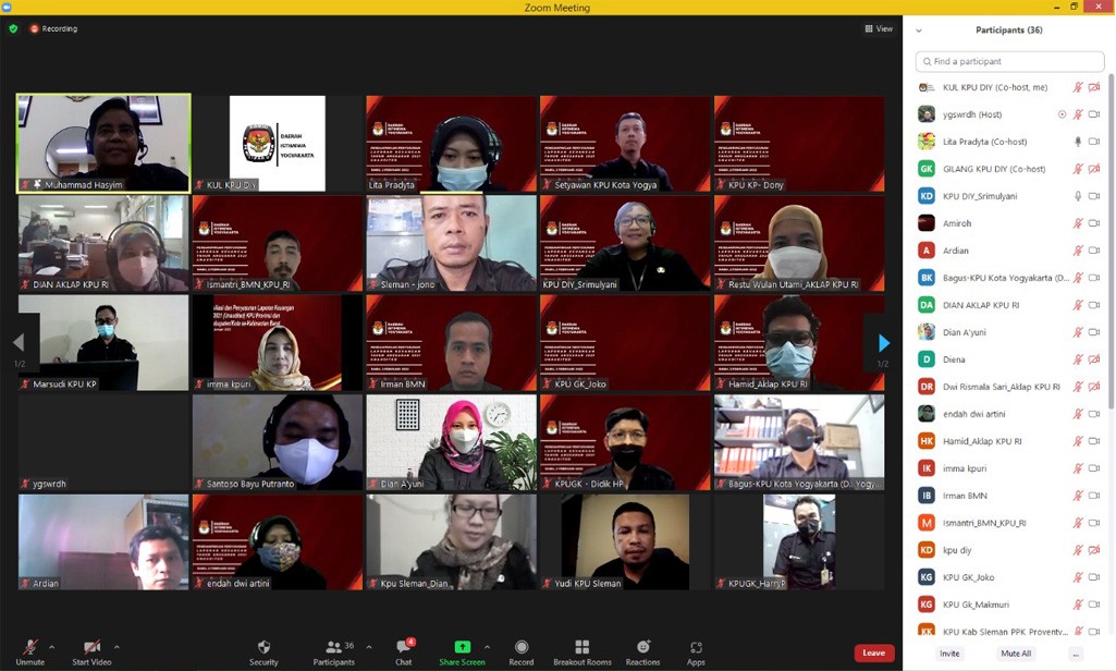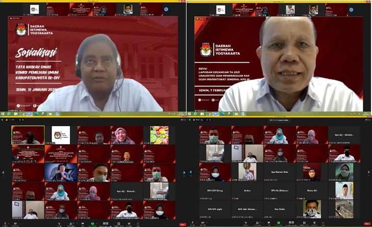 diy.kpu.go.id - Melanjutkan proses pemutakhiran data pemilih berkelanjutan yang dilaksanakan secara berkesinambungan di setiap tahunnya, KPU DIY menyelenggarakan Rapat Pleno Rekapitulasi Daftar Pemilih Berkelanjutan Bulan Januari 2022 Tingkat Daerah Istimewa Yogyakarta. Acara yang diselenggarakan pada Selasa (8/2) melalui aplikasi Zoom Meeting, didahului dengan Rapat Koordinasi Persiapan Rekapitulasi Daftar Pemilih Berkelanjutan Bulan Januari 2022 di Wilayah Daerah Istimewa Yogyakarta, yang mengundang seluruh KPU Kabupaten/Kota se-Daerah Istimewa Yogyakarta. Dalam sambutannya, Ketua KPU DIY Hamdan Kurniawan menjelaskan mengenai pelaksanaan Rapat Penyampaian Hasil Pemutakhiran Data Pemilih Berkelanjutan Semester II Tahun 2021 yang dilaksanakan oleh KPU Republik Indonesia pada Kamis (3/2) lalu. Hamdan menyampaikan apresiasi kepada seluruh KPU Kabupaten/Kota atas kerja pemutakhiran yang telah dilakukan sepanjang tahun 2021. Pemutakhiran data pemilih berkelanjutan merupakan amanat Undang-Undang dalam merawat hak pilih dan sesuai dengan ketentuan Peraturan KPU Republik Indonesia Nomor 6 Tahun 2021 tentang Pemutakhiran Data Pemilih Berkelanjutan. Sehingga Hamdan mengharapkan, KPU Kabupaten/Kota senantiasa meningkatkan kerjasama dengan instansi terkait, untuk mendapatkan data-data sebagai masukan setiap bulannya. Pelaksanaan rekapitulasi dipandu oleh Ketua Divisi Perencanaan, Data, dan Informasi KPU DIY Wawan Budiyanto, yang membacakan hasil rekapitulasi Daftar Pemilih Berkelanjutan Bulan Januari 2022 dari masing-masing kabupaten/kota. Dalam rekapitulasi bulan Januari, didapatkan data ubah elemen dari Kabupaten Gunungkidul sebesar 2.692 (dua ribu enam ratus sembilan puluh dua) pemilih, yang berubah dalam hal status disabilitas. Data tersebut didapatkan dari Dinas Sosial Kabupaten Gunungkidul, dan ditindaklanjuti oleh KPU Kabupaten Gunungkidul dengan mengecek pada aplikasi SIDALIH untuk melakukan perbaikan data. Wawan mengingatkan kepada seluruh KPU Kabupaten/Kota untuk memanfaatkan berbagai media dan jaringan, terutama pegiat-pegiat difabel untuk mendapatkan data pemilih difabel yang akurat. Hasil rekapitulasi di bulan Januari 2022 tingkat DIY dapat diunduh dalam tautan berikut.(pdatin)