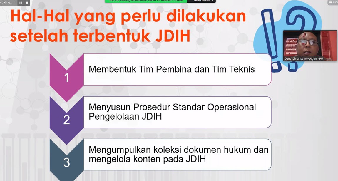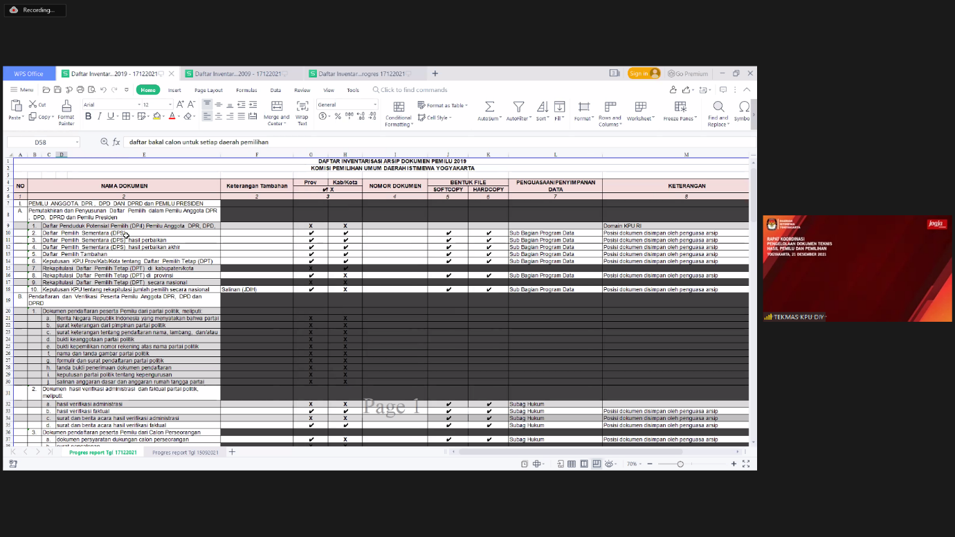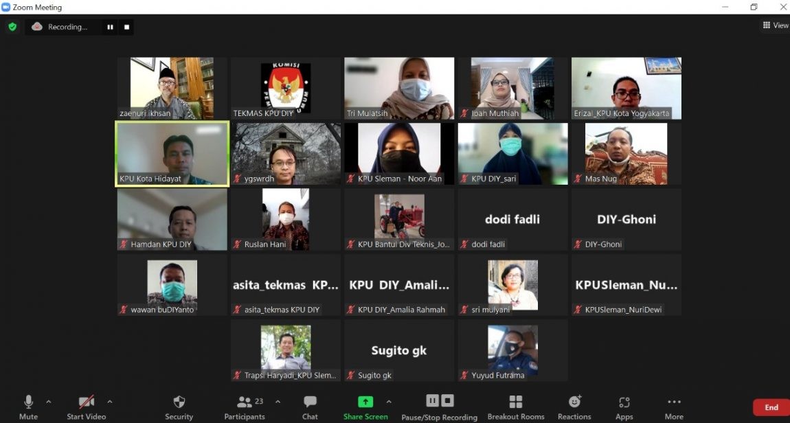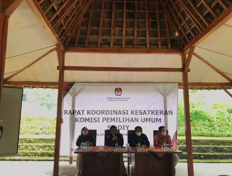 diy.kpu.go.id – Sebagai sarana koordinasi bagi Komisi Pemilihan Umum se-Daerah Istimewa Yogyakarta, setiap bulan KPU DIY secara rutin melaksanakan Rapat Koordinasi Kesatkeran. Rapat Kesatkeran bulan Desember 2021 dilaksanakan pada 22 Desember 2021 di Warung Pak Lanjar, Ngaglik, Sleman. Rapat yang dihadiri oleh Pejabat Struktural dan Pejabat Pembuat Komitmen KPU se-DIY ini dibuka oleh Ketua KPU Kabupaten Sleman. Selanjutnya, dengan dipandu oleh Kepala Bagian Keuangan, Umum, dan Logistik, Srimulyani, para kepala bagian di lingkungan KPU DIY menyampaikan pemaparan. Paparan pertama disampaikan oleh Kepala Bagian Program, Data, Organisasi, dan Sumber Daya Manusia, Bambang Gunawan. Bambang menyampaikan informasi tentang data pegawai KPU se-DIY di bulan Desember 2021, pelaksanaan Daftar Pemilih Berkelanjutan Bulan Desember 2021, evaluasi capaian kinerja Triwulan III, pelaksanaan pemutakhiran data mandiri pegawai, serta pengisian Lembar Kerja Evaluasi (LKE) Reformasi Birokrasi, dan LKE Zona Integritas di lingkungan KPU se-DIY. Pemaparan kedua disampaikan oleh Sri mulyani. Sri menyampaikan terkait realisasi penggunaan anggaran sampai dengan bulan Desember 2021 KPU se-DIY, perkembangan penggunaan aplikasi Sirup KPU se-DIY bulan Desember 2021, dan rekapitulasi perbandingan Simonika dengan Omspan per 22 Desember 2021. Kabag KUL KPU DIY ini juga menyampaikan informasi pelaksanaan perkembangan pemindahan BMN serta rencana pelaksanaan cash opname oleh Inspektorat KPU RI pada 29 dan 30 Desember 2021. Cash opname tersebut akan mengambil sampel KPU DIY dan KPU Kota Yogyakarta. Selanjutnya pemaparan dari Bagian Hukum, Teknis, dan Hubungan Partisipasi Masyarakat yang disampaikan oleh Plt. Kabag Hukum, Teknis, dan Hubungan Partisipasi Masyarakat KPU DIY, Muhammad Hasyim. Pemaparan dari ketiga bagian di KPU DIY tersebut selanjutnya ditanggapi oleh Sekretaris Kabupaten/Kota se-DIY. Menutup semua pemaparan dan sekaligus untuk memberikan arahan, di penghujung rapat, Sekretaris KPU DIY, Muhammad Hasyim, menyampaikan kebijakan-kebijakan yang harus dilakukan dalam menjalankan ketugasan setiap KPU Kabupaten/Kota se-DIY. Hasyim juga mengingatkan jajarannya untuk terus menjaga komitmennya untuk memberikan pelayanan terbaik kepada masyarakat.(kul)