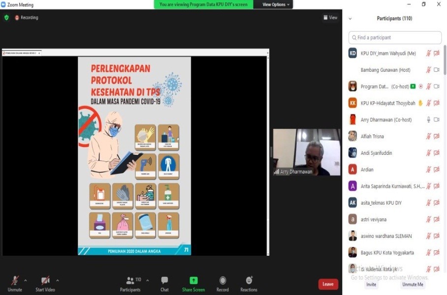 diy.kpu.go.id – Kamis, (07/10) KPU DIY mengadakan Peluncuran dan Bedah Buku “Pilkada di Tengah Dua Bencana” yang ditulis oleh Hamdan Kurniawan. Bencana dimaksud adalah Covid 19 dan Erupsi Gunung Merapi yang dihadapi oleh warga DIY di tahun 2020 silam. Ketua KPU RI, Ilham Saputra, dalam sambutan dan pembukaan acara mengatakan, “Penyelenggaraan Pilkada dilakukan di masa Pandemi Covid 19. Pandemi Ini mengganggu proses tahapan Pilkada, sehingga tahapan ditunda selama tiga bulan. Akibatnya harus diatur ulang tahapannya. Apalagi Jogja sendiri ada 2 bencana, yaitu Gunung Merapi dan Covid 19. Tentu ini menjadi catatan tersendiri.” Mengawali bedah dan diskusi, Hamdan Kurniawan, Ketua KPU DIY dan penulis buku ini, menginformasikan kalau di dalam buku terdapat 15 judul tulisan yang memotret tahapan Pemilihan. Hamdan juga mengatakan kalau dalam buku yang dia tulis ini terdapat beberapa dinamika kasus. Terutama dalam konteks Pandemi Global, pelaksanaan Pilkada, dan persoalan putusan Mahkamah Konstitusi menyinggung kasus di Provinsi Nusa Tenggara Timur. Selanjutnya para narasumber, yaitu Zulfikar Arse Sadikin (Anggota Komisi II DPR RI), Arief Budiman (Anggota KPU RI), dan Nanang Trenggono (Akademisi Universitas Lampung) berturut-turut menyampaikan tanggapan mereka atas buku “Pilkada di Tengah Dua Bencana” ini. Dalam tanggapannya, Zulfikar Arse Sadikin mengatakan “Ada beberapa hikmah yang bisa diambil dari buku Bung Hamdan Diantaranya, buku ini merupakan dokumentasi atau rekaman terhadap peristiwa yang dihadapi saat ini. Juga memberikan gambaran kepada kita secara umum masalah-masalah yang dihadapi oleh penyelenggara atau kita semua dari periode ke periode, dari Pemilu ke Pemilu, yang sebenarnya hampir sama”. Selanjutnya dalam tanggapannya, Nanang Trenggono, menyampaikan kalau dalam buku tersebut dapat melihat karakter tulis dari Hamdan sebagai penulis. Menurutnya Hamdan mempunyai karakter tulis akademisi. Sedangkan Arief Budiman mengatakan, “Menurut saya buku ini menggambarkan bagaimana situasi Covid 19 sebagai culture baru dalam penyelenggaraan Pemilu. Angka partisipasi naik menjadi 76.09 persen, berarti pemilih kita mematuhi segala peraturan yang ditetapkan. Ada culture baru Pemilu bagi peserta kampanye yang tidak turun ke jalan, tata cara penyelenggaraan digambarkan melalui aksi heroik petugas penyelenggara bagaimana menghadapi pemilih yang terpapar Covid 19”. Acara yang dilaksanakan secara daring melalui Zoom meeting ini dihadiri oleh KPU RI, KPU Provinsi seluruh Indonesia, KIP Provinsi Aceh, Bawaslu DIY, jajaran KPU DIY, KPU Kabupaten/Kota se-DIY serta instansi lain terkait. Antusiasme peserta bedah buku dan diskusi terlihat dari munculnya pertanyaan kepada Ahmad Shidqi, moderator dan Ketua Divisi Sosialisasi, Pendidikan Pemilih, Partisipasi Masyarakat, dan SDM KPU DIY. Dokumentasi pelaksanaan bedah buku dapat diunduh di tautan ini. Sedangkan softcopy buku “Pilkada di Tengah Dua Bencana” dapat diunduh di tautan ini (hth)