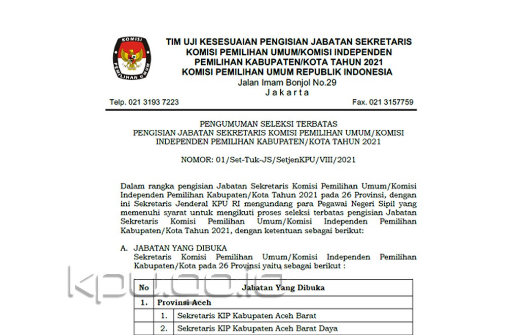 Dalam rangka Pemutakhiran Daftar Pemilih Berkelanjutan Tahun 2021, Komisi Pemilihan Umum Daerah Istimewa Yogyakarta membuka kesempatan kepada Warga Negara Indonesia untuk menjadi Tenaga Pendukung melalui Seleksi Calon Tenaga Pendukung di Lingkungan Sekretariat Komisi Pemilihan Umum Daerah Istimewa Yogyakarta.