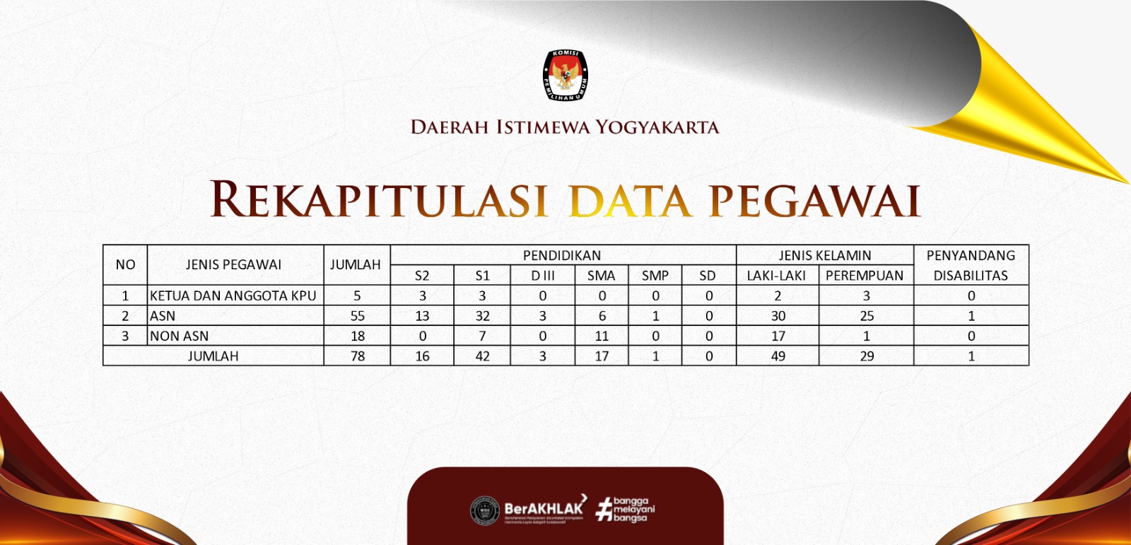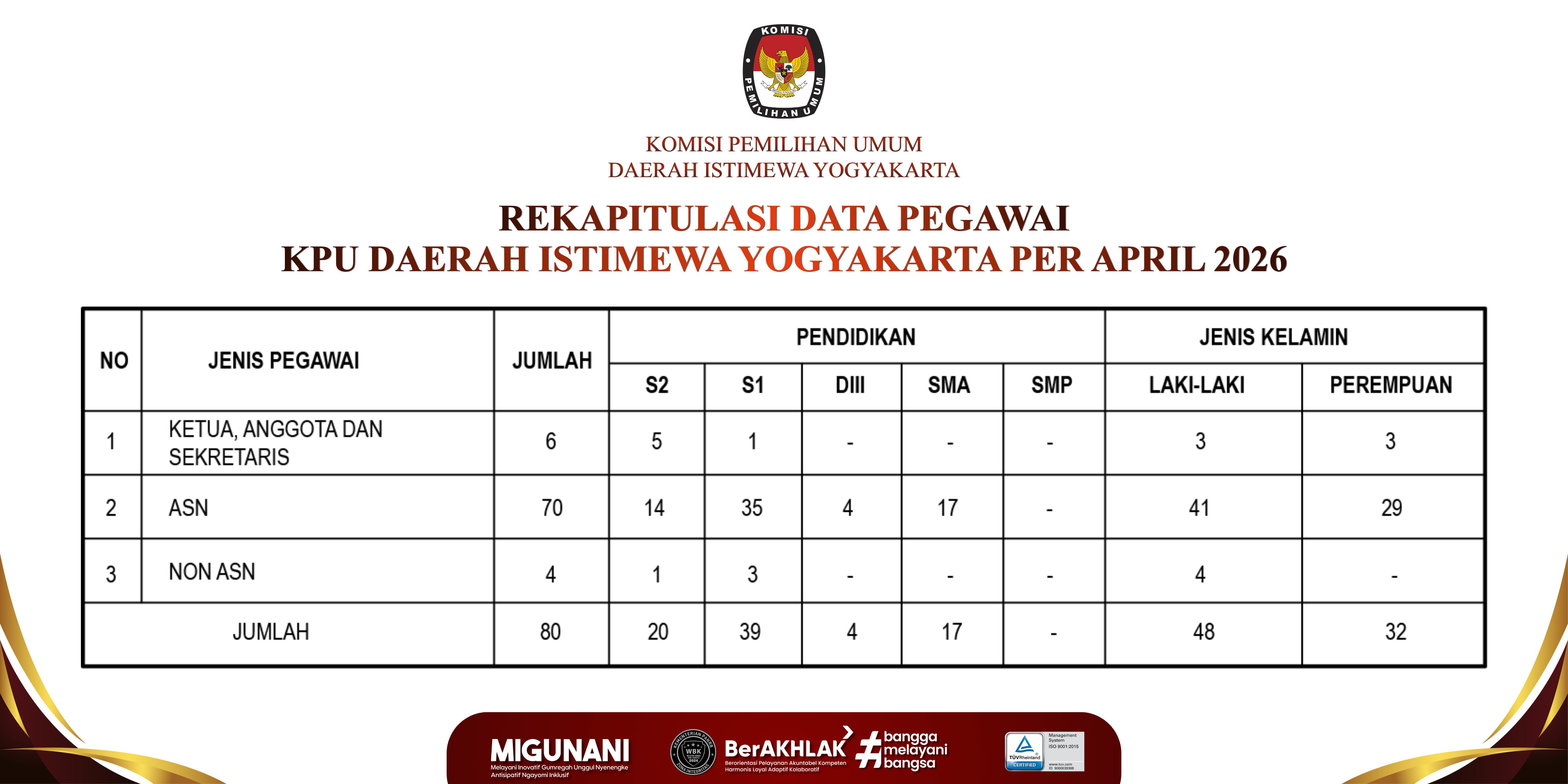 Struktur Organisasi KPU DIY yang terdiri atas Ketua, Anggota, Sekretaris, PNS, PPPK dan PPNPN dapat di unduh di sini